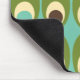 This mouse pad has a mid-century modern design of green ovals with ovals and circles in them making them look like eggs in retro colours of red, yellow, blue, green, brown, and orange on a field of light blue.