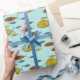 Mid Century Modern Fish Atomic Era Blue Custom Wrapping Paper