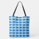 Mid-Century Modern design print bag of stylised fish, alternating positive and negative space - mixed media graphic in cobalt blue and white, accented with sky blue and aqua