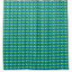 Shower curtain in a Mid-Century Modern design of stylised fish, alternating positive and negative space - mixed media graphic in shades of lime green, cobalt blue and turquoise, accented with black