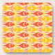 Mid-Century Modern design of stylised fish, alternating positive and negative space - mixed media graphic in bright, candy shades of light orange, tangerine, pink grapefruit and yellow, accented with white