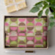 Retro Mid Century Geometric Half Square and Circle Pattern Brown Chartreuse & Pink.