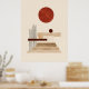 This mid-century modern wall art blends geometric elegance with architectural inspiration. It features a harmonious arrangement of simple shapes—stairs, circles, and rectangles—creating a balanced and visually engaging composition. The clean lines and architectural elements of this AI designed artwork, make it an ideal addition to living rooms, offices, or modern spaces, infusing any room with creativity and harmony.