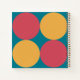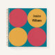 A spiral-bound notebook with mid-century modern circles design on the cover. The circles are red and yellow on a blue background. Personalise the chic notebook with the recipient's name for the finishing touch.
