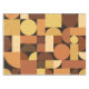 This retro 1950s styled abstract art pattern has squares, circles and half circles in shades of orange, yellow and brown.
