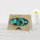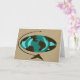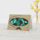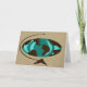 Travel around the world with this Mid Century Modern Globe Art Greeting Card. The front design features an abstract oval globe with wood grain continents. The oceans are in shades of teal and turquoise. The globe is on a triangular wooden stand and the whole world is on a wheat coloured background. The inside of the card is blank.