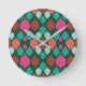 Gorgeous Mid Century Modern Green Geometric Clock design that is full of retro colors and shapes that include the pink, turquoise and coral colors! Buy today!