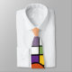 This tie has a mid-century modern design of a grid with some rectangles coloured in and circles on top in retro colours.