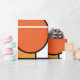 This wrapping paper has a mid-century modern design of a grid with some rectangles colored in and circles on top in retro colors.