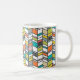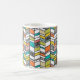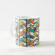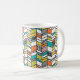 This mug has a mid-century modern design of herringbone with retro colours and lines filling some of the spaces.