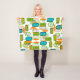 Mid-Century Modern Inspired Fleece Blanket, designed according to the mid-century and atomic era time period in colours of orange, teal, black and lime green.