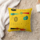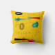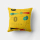 Mid-Century Modern Pillow, abstract design in black, red, teal and grey on a bright gold background. Perfect for any mid-century modern decor.