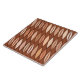 Tile in a Mid-Century Modern design of abstract leaves in shades of beige, tan, and cream, accented with dark chocolate brown, on a medium cocoa brown background