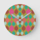 Gorgeous Mid Century Modern Lime Green Geometric Clock design that is full of retro colours and shapes that include the pink, turquoise and coral colours! Buy today!