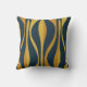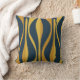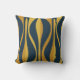 Mid Century Modern Retro Lounge Striped Ogee Pattern in Navy Blue and Mustard Throw Pillow. Contemporary midcentury mid mod abstract design; funky 50s 60s 70s aesthetic. Rich colours. Elegant, lively, chic home decor. By Kierkegaard Design Studio.