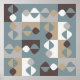 A mid-century modern geometric pattern with a colour palette of mint, chocolate, caramel, grey and white.