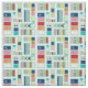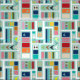 This fabric has a mid-century modern design of rectangles with rectangles, squares, boomerangs, stars, or starbursts inside. If you like the design but prefer different colours, message me.