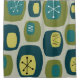 This atomic age styled abstract art design with oblong shapes in olive green, dark blue and aqua blue.