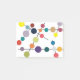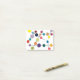 These Post-It notes have a mid-century modern design of black lines with circles of different colors and sizes on a field of white.