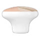 "Mid Century Modern Organic Pattern in Terracotta with mint green, warm peach and Ivory, Ceramic Knob matches decoupage papers and tiles for painted furniture or kitchen cabinets." Artwork was painted by internationally licensed artist and designer, Audrey Jeanne Roberts, copyright.
