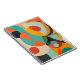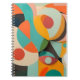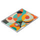 A Mid Century modern painting in various geometric shapes and colours in red, teal, orange, black and green.