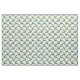 A Mid Century inspired pattern of simple palm tree graphics in orange and green set around a boomerang shaped oasis or swimming pool in a vivid aqua blue on this fabric. The sand background colour may be edited.