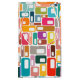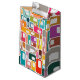 This gift bag has a mid-century modern design of rectangles with a white hole in retro colours.
