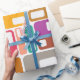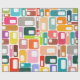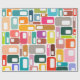 This wrapping paper has a mid-century modern design of rectangles with a white hole in retro colours.