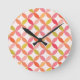Add Retro style to your wall decor with round clock featuring decorative Mid century modern pattern with colorful circles in pink, red, coral, orange and lime green. Inspired by retro 1950s, this mid mod design add elegance and mid mod charm to your space