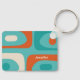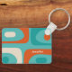 Mid Century Modern Piquet Minimalist Abstract Pattern in Turquoise Teal, Orange, and Beige Cream Key Chain. Fun but sophisticated midcentury mod retro design; a nod towards the 50s and 60s, in fun, stylish colours. Can be personalised with name or other text. By Kierkegaard Design Studio.