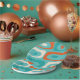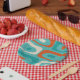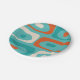 Mid-century Modern Piquet Pattern Teal Orange Paper Plate