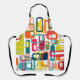 This apron has a mid-century modern design of colourful rectangles overlapping each other. Fun and bright.