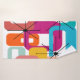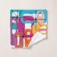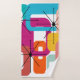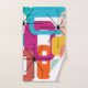This towel set has a mid-century modern design of colourful rectangles overlapping each other. Fun and bright.