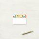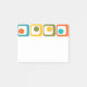 This Post-It notepad has a mid-century modern design of four rounded rectangles in four rows with ovals inside them in orange, yellow, green, and turquoise.