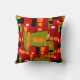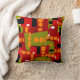 Mid-Century Modern Pillow in abstract shapes of red, avocado green and orange.