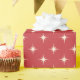 Mid century modern wrapping paper features atomic star pattern in retro dark red. The cute starburst is a cool midcentury classic.