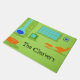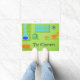 This customisable Mid Century Modern Retro Door Mat will have you breaking out your strands of pearls to do the most mundane tasks. The design features a lime green background with the silhouette of a blue, cone fireplace, a green, classic tube television set (complete with rabbit ears), an orange lounge chair and footstool, a blue, starburst clock, and an orange ottoman with tapered legs. Customise with a name or saying. Home sweet home just got a little bit sweeter!