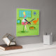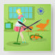 This Mid Century Modern Retro Housewife Wall Clock will have you breaking out your strands of pearls to do the most mundane tasks. The design features a lime green background with the a green, classic tube television set (complete with rabbit ears), an orange lounge chair and footstool, and a blue, starburst clock. But, the pièce de résistance is most assuredly the classic television housewife wearing a poofy pink dress with a turquoise and white apron and turquoise shoes. Her blonde hair is perfectly flippy and her hand is holding a vacuum nozzle. Of course it is! What else would she be doing if not making her home sweet home a little bit sweeter?