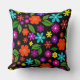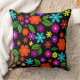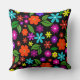 mid century modern retro vibrant floral black cushion