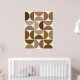 Mid-century Modern style design in a mix of brown and cream colour semicircles on a cream colour background.