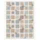 A retro 1950s art pattern with geometric rounded squares and atomic style stars. Multicolored in soft, neutral light brown and blue.