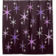 This design was inspired by vintage mid century modern art. It has a pattern of stars in shades of pink and purple on a dark background.