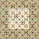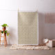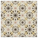 This graphic patterned fabric pays tribute to cool retro Mid Century Modern motifs with starburst shapes tipped by circles in colours of deep brown, warm clay and harvest gold set against a lighter background hue.
