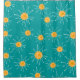 Mid-Century Modern Shower Curtain in starburst pattern using colours of yellow on a teal background. The starburst pattern was widely popular during the mid-century era and was often seen in art, clocks and various household items.