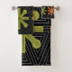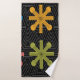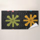 This towel set has a Mid-century modern design of starbursts in retro colours on a field of black.