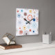 A gorgeous floral circle design to fit a mid century modern theme. Clay red and blues make up most of the colours in this circle based design - with splashes of yellow and muted lavenders. A very pretty design for your home decor.