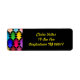 These return address labels have a mid-century modern design of retro stars in shades of red, orange, yellow, green, blue, and purple.
