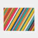 This doormat has a design of diagonal stripes in Mid-Century Modern colors.