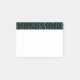 This Post-It notepad has a mid-century modern design of lines with half-rectangles in turquoise on a field of black.