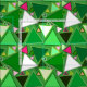 Mid-Century Modern geometric mosaic of outlined triangles in shades of emerald and lime green, fuchsia and white on a deep lime green background fabric